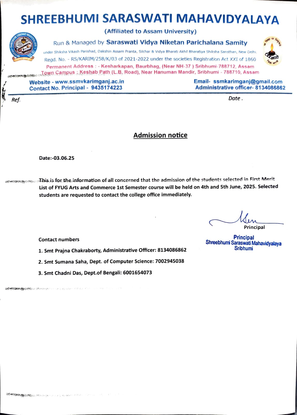 In constitution with the observation of the Silver Jubilee Celebration of Saraswati Vidya Niketan Sr. Sec. School, Sribhumi a mass demand arose to establish a new degree college under the auspicious umbrella of the sangathan to foster higher education with inputs from Bharatiyata for developing new generations of students, [...]